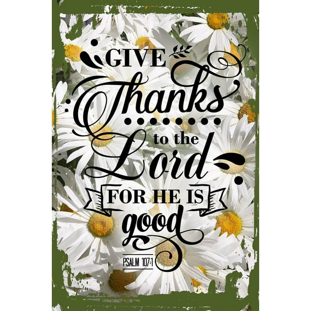 Daisy Flower Wall Art Give Thanks To The Lord For He Is Good Psalm 107 1 Bible Verse Tin Wall Sign 8 X 12 Decor Funny Gift Walmart Com