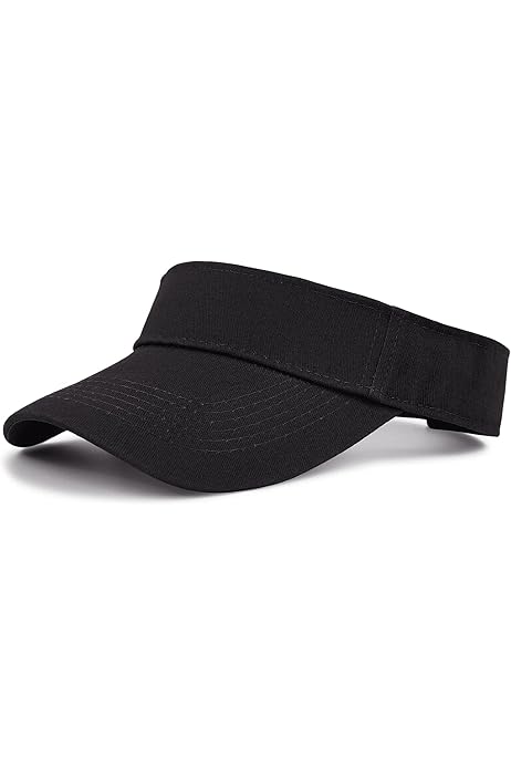 Black Sun Visors For Women And Girls Long Brim Thicker Sweatband Adjustable Hat